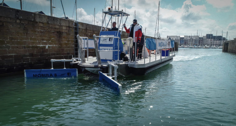 The Mobula 8 Sea Cleaner structure is made of aluminium, a strong, weather-resistant material that can be recycled indefinitely. It is light and does few large-scale movements, reducing its fuel consumption. It is a patented technology by Efinor Sea Cleaner.