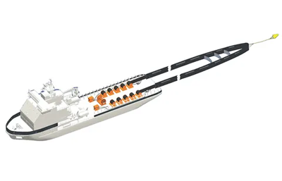 The system, which comprises the Speed Sweep 3200 and additional modified RO-BOOM, has a swath or opening of 750m (2500ft) and is maneuvered by two ships of opportunity.