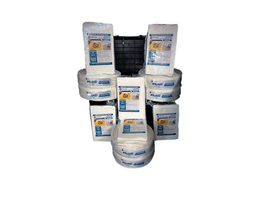 - Kit Contents: (6) 5” x 25’ SpillBoa, (400) 10”x16” Oil Shammy Towels, (5) Pairs of Nitrile Gloves, (9) Disposal Bags