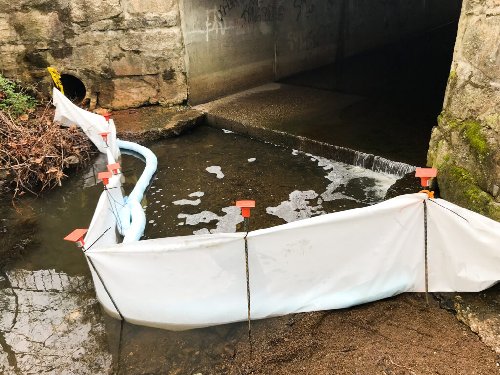Spilltration® Oil Sheen Fence: Filter a Broad Range of Petroleum Contaminants, While Allowing Clean Water to Pass Through.
