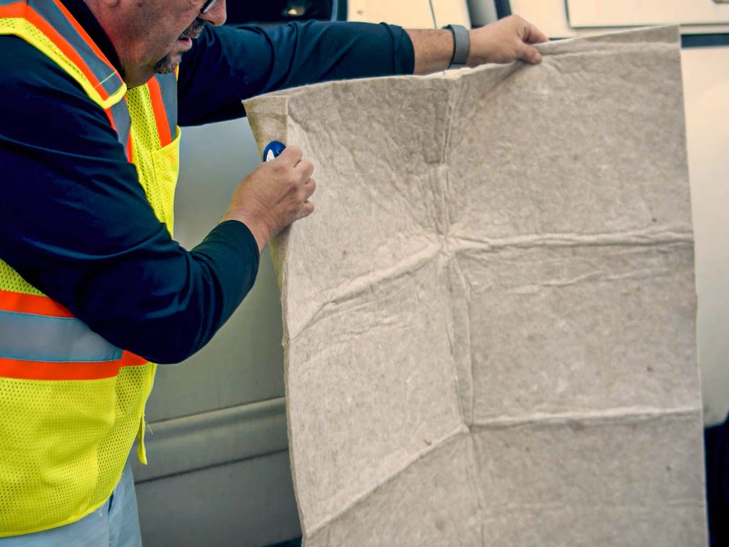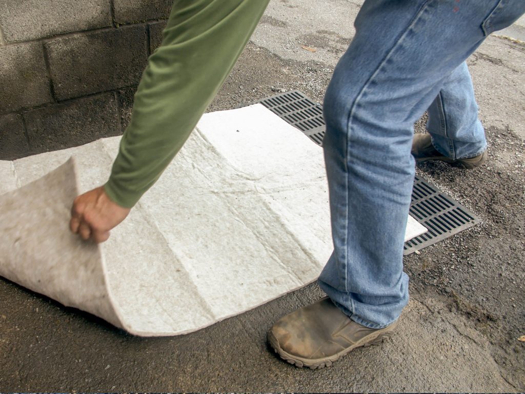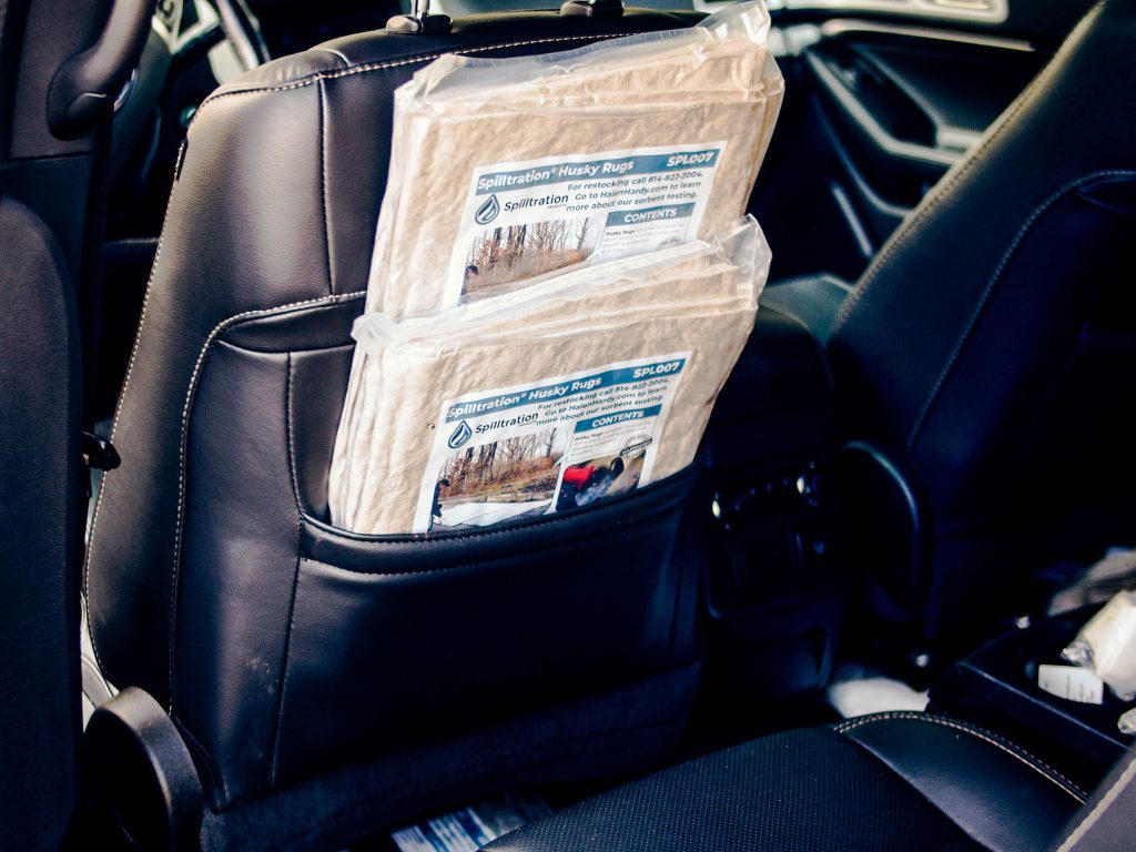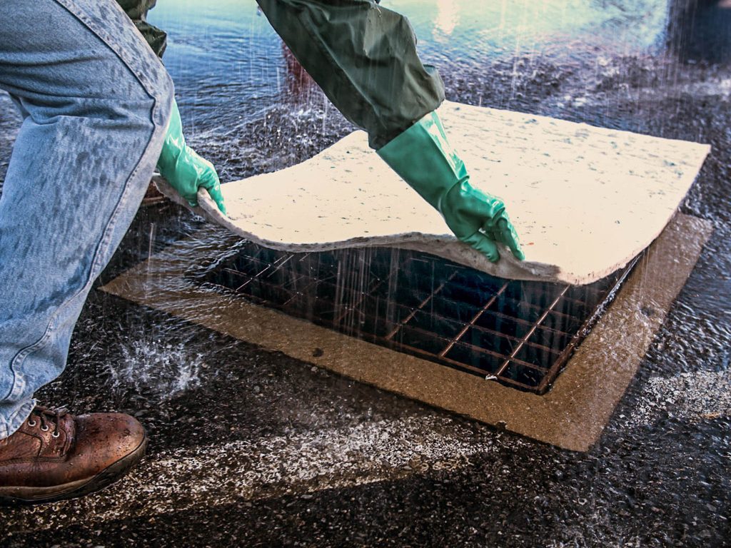 Spilltration® Smooshed Husky Rugs fit behind and under seats and in toolboxes to help frontline workers be prepared to clean up oil and fuel spills fast – rain or shine. Extra-large rugs instantly soak up 3.2 gallons of oil or fuel, and if it’s raining, filter out clean rainwater. Place them directly over spills or lay them over drains to prevent oil sheens from being released.