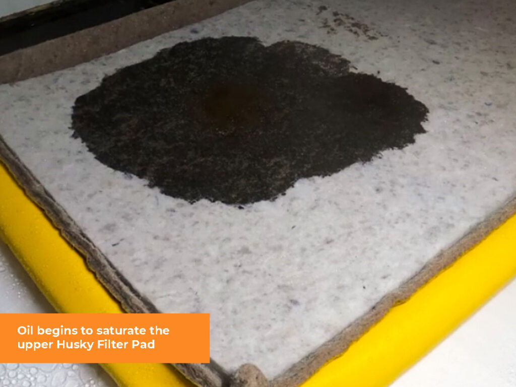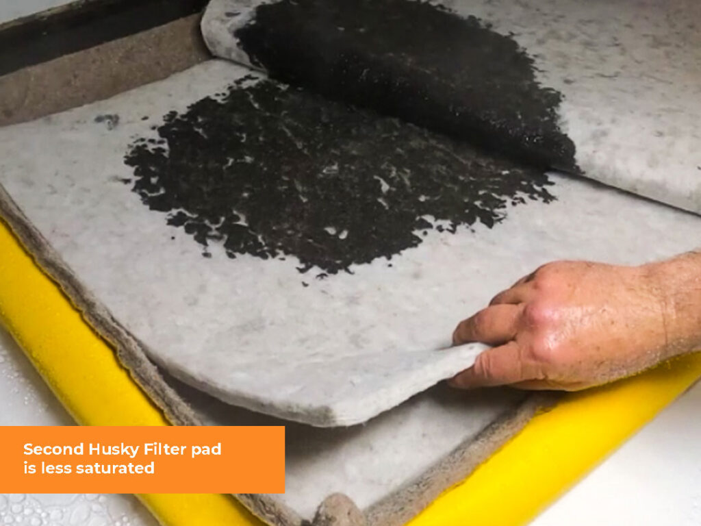- Husky Oil Filter Pads: each 22.25” X 24” Husky Filter Pad absorbs up to 1.26 gallons per pad. Spilltration® Husky filter material is made from post-consumer waste.