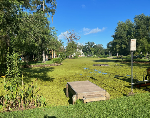 “The owner’s grandmother had a water hyacinth plant in the kitchen that she had grew tired of. She took the plant outside and threw it in one of the ponds, which in time lead to all seven ponds to be 100 percent covered. It looked like you could walk on the ponds, that’s how overgrown it was:. – says Brown.